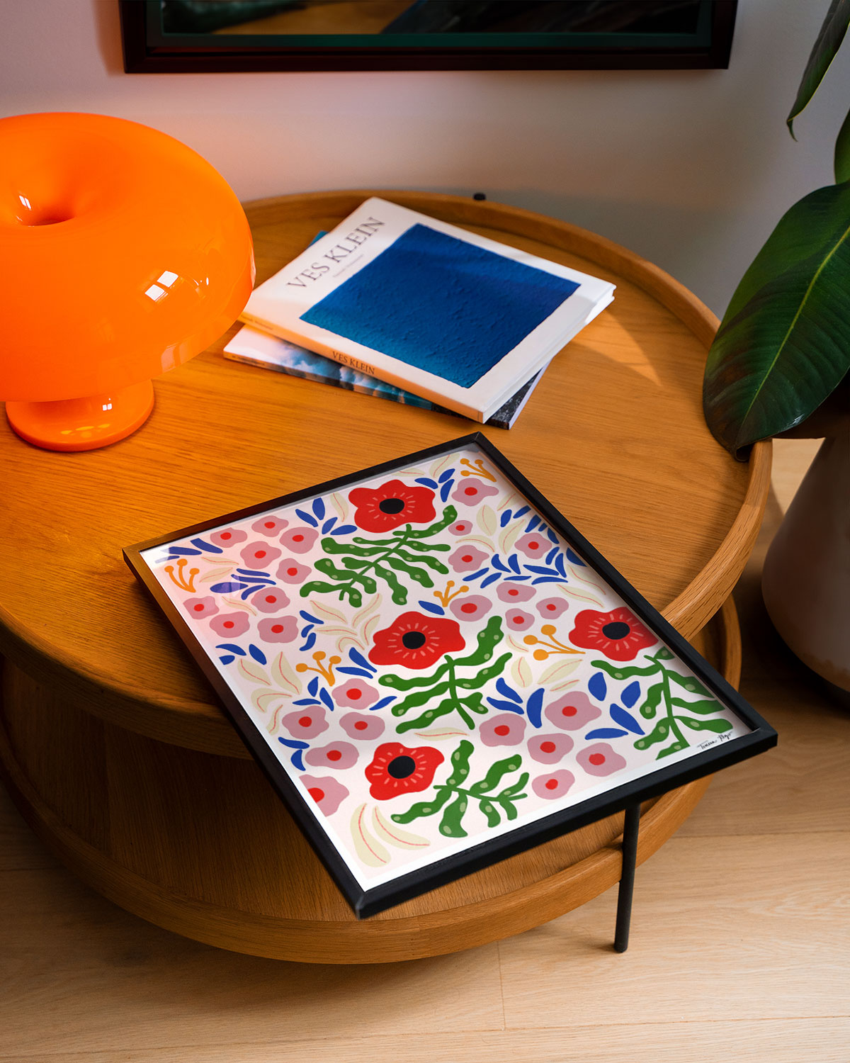 Der Druck „Poppys“ von Teresa Rego fängt die ruhige Schönheit von Mohnblumen in einem minimalistischen Design ein.